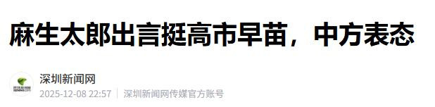 深圳新闻网 麻生太郎出言挺高市早苗,中方表态